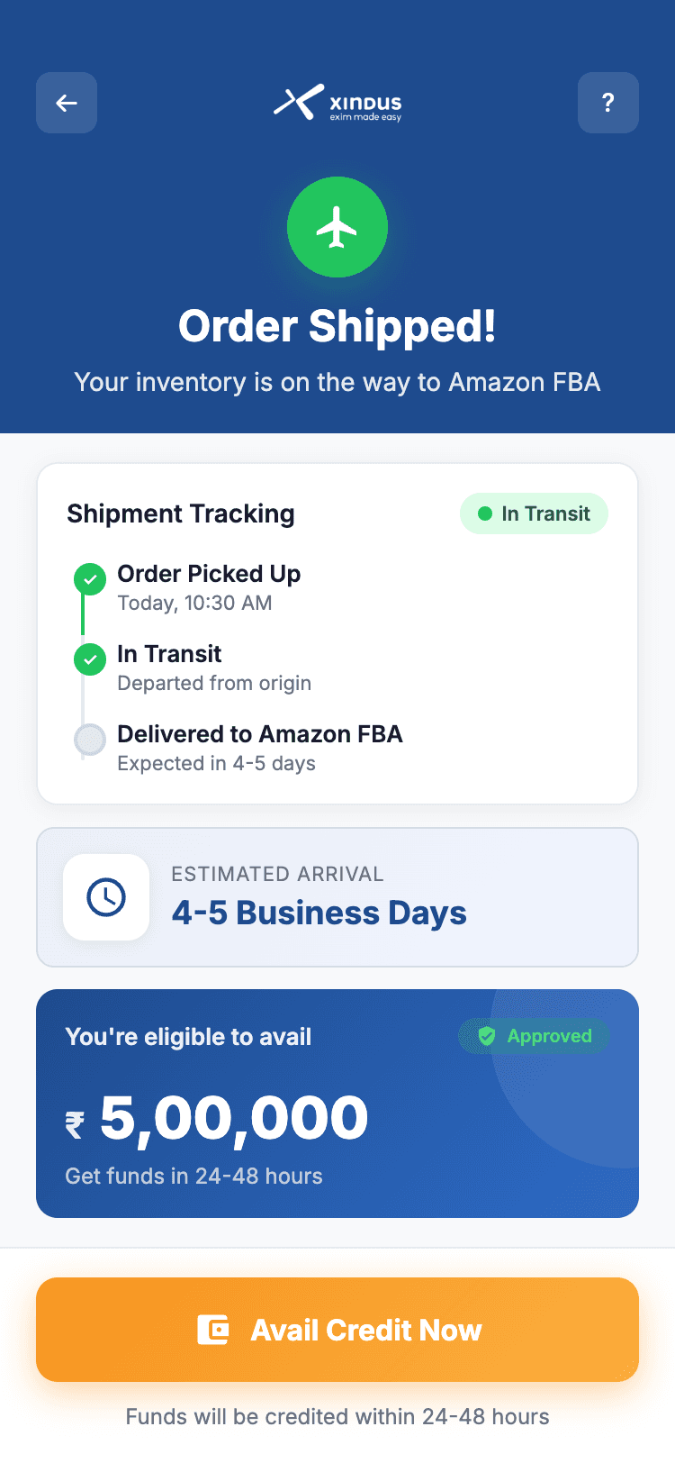 Don’t let your money stay stuck in transit or with Amazon. Restock immediately and keep sales running with Xindus Capital.